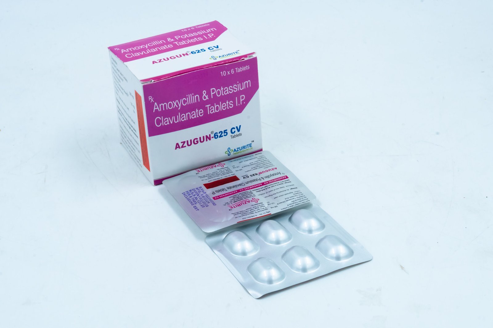AZUGUN-625CV is a combination of Amoxicillin and Potassium Clavulanate that provides enhanced protection against beta-lactamase-producing bacteria. It ensures broad coverage and high efficacy in treating sinusitis, pneumonia, urinary tract infections, and skin infections. The synergistic formula not only kills bacteria but also prevents resistance, making AZUGUN-625CV a trusted choice for severe and recurrent infections.